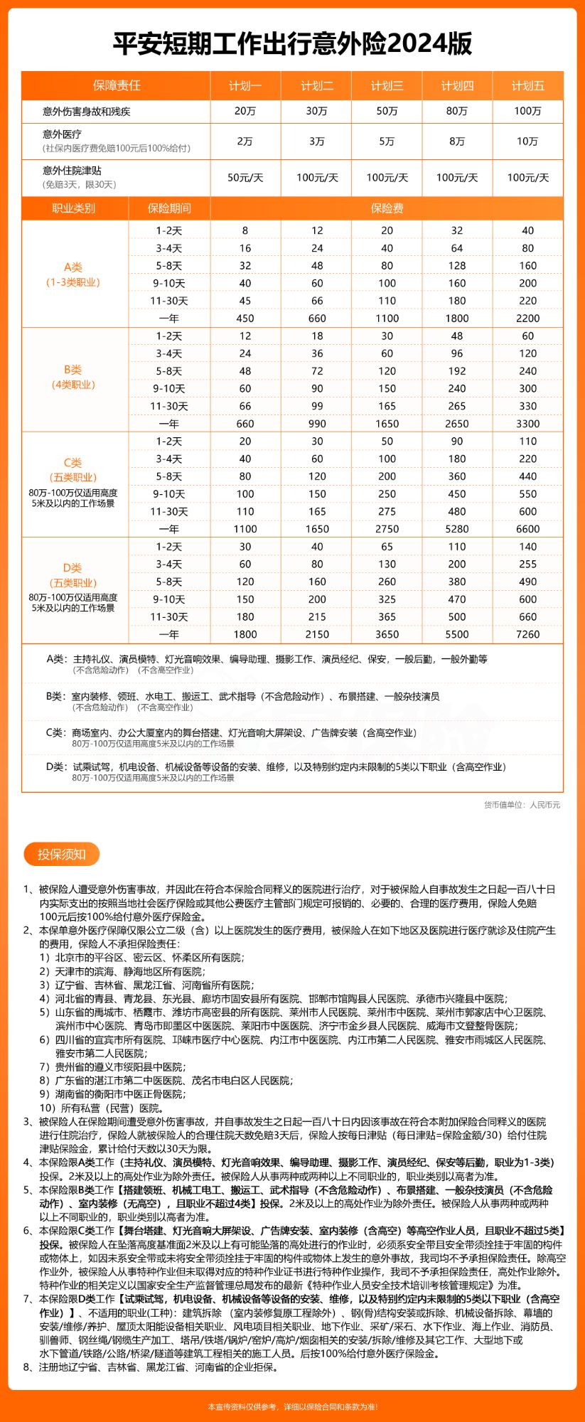 平安舞台塔建、灯光音响大屏架设等短期工种意外险