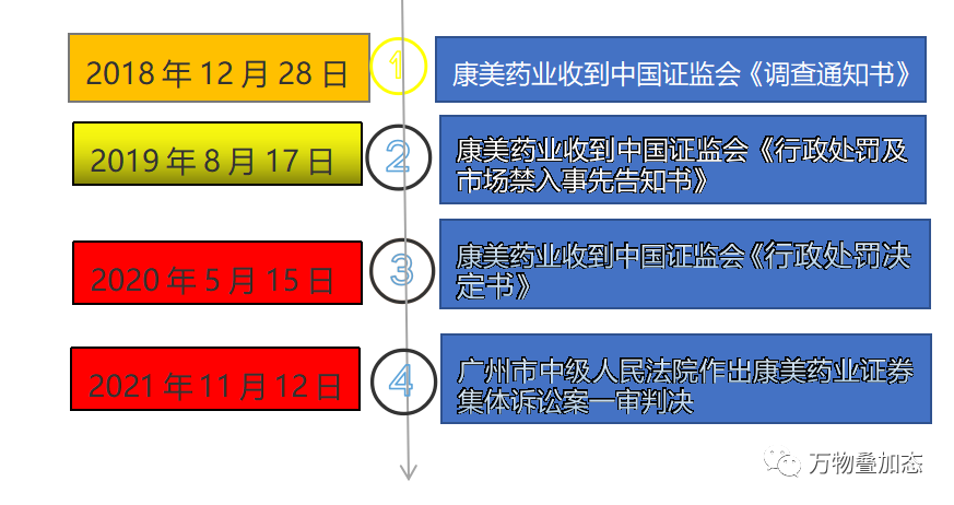 2018年12月28日康美药业收到中国证监会《调查通知书》。2019年8月17日,康美药业公告称该公司及相关当事人收到中国证监会《行政处罚及市场禁入事先告知书》。2020年5月15日,康美药业公告称公司收到中国证监会《行政处罚决定书》。